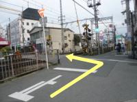 30メートルほど歩くと左手に踏切がありますので、踏切を渡っていただきます。
